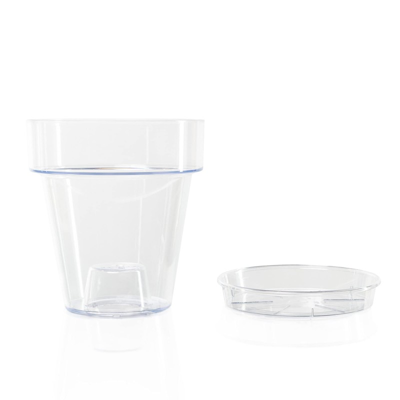 Kalapanta Transparent Plastic Pot for Orchids, with Drainage Holes and Saucer (1, Ø 14 cm)