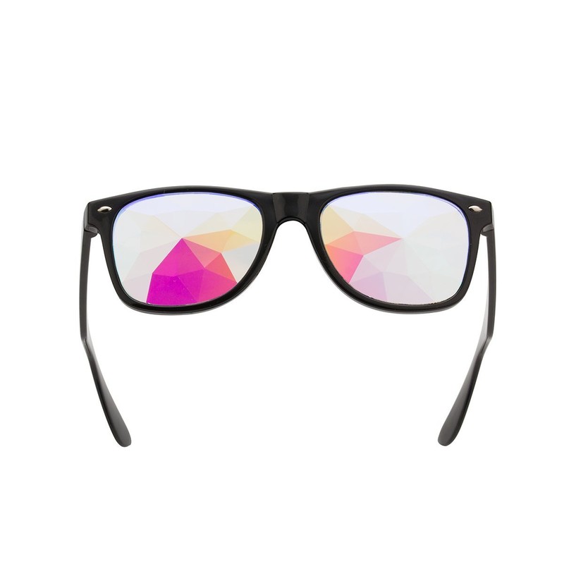 Kaleidoscope Glasses - Rainbow Rave Prism Diffraction Crystal Lens Sunglasses Goggles, Black, One Size