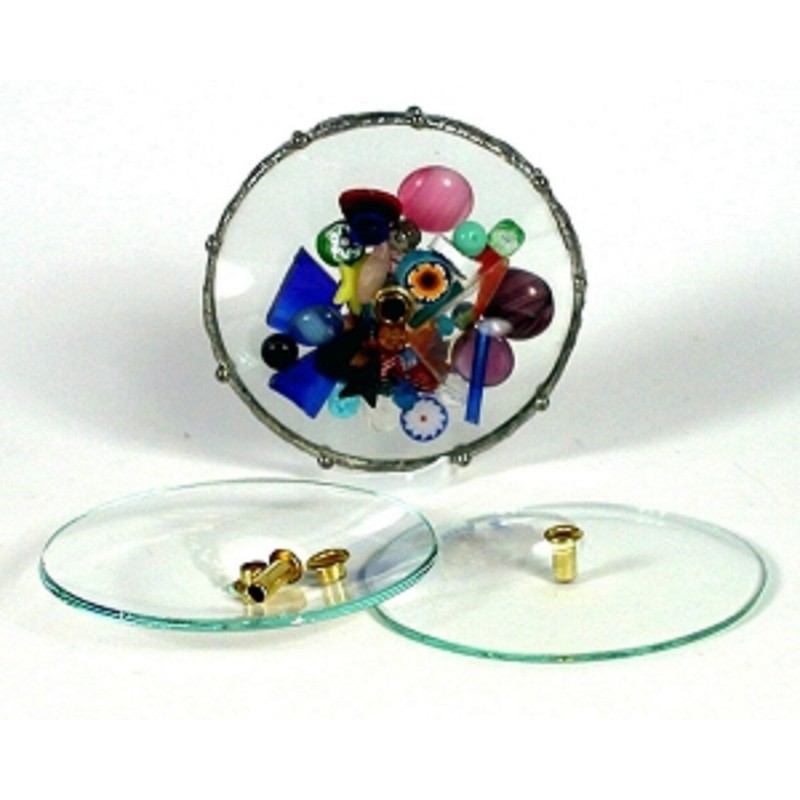 Create A Custom Kaleidoscope The Image Disk is a rotating chamber made by joining two clear glass domes. The unique design lets in optimum light for an exceptionally brilliant image Easily assembled in minutes, the Image Disk can be filled with jeweled, bits of glass, etc. Each kit contains two 2-1/2" diameter glass domes with center holes, brass mounting eyelets, and instructions.
