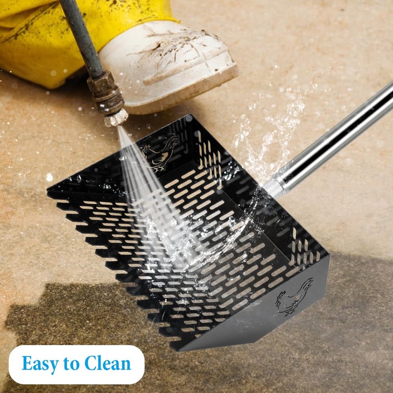- Sturdy & Durable Metal Construction - Made of strong sheet metal and stainless steel, this coop scoop resists rust and breakage. The fine mesh screen efficiently sifts sand, bedding, and waste, making it ideal for heavy-duty cleaning in chicken coops, barns, or even at the beach.