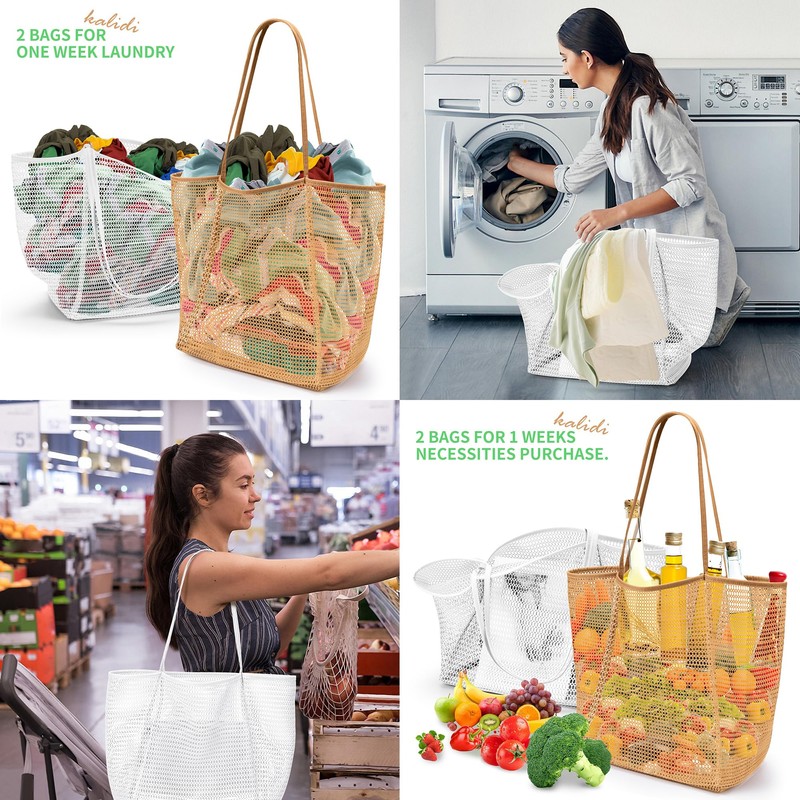 KALIDI Reusable Grocery bag, 2 Packs Large Tote Bag 15"X16" Durable Mesh Foldable Daily Utility Shopping Laundry BAG
