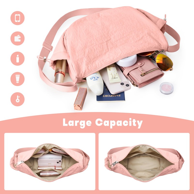 - 【Classic minimalist design】The women's hobos & shoulder feature an elegant curved cut, giving it a adorable look. Nylon crescent bag comes with a zippered pocket and two inner pockets. Additionally, it has been upgraded with two side pockets in a separate compartment, which allows for easy classification and effective organization of items.