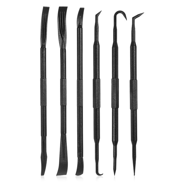 - Item Specifications: This 6-piece set includes dual-ended picks and pry bars with a total of 12 heads: 2 hook picks, 2 straight picks, 2 angle picks, and 6 pry bar sizes ranging from 3.6mm to 12.5mm. Made of durable PE plastic, these tools are designed for long-term use.