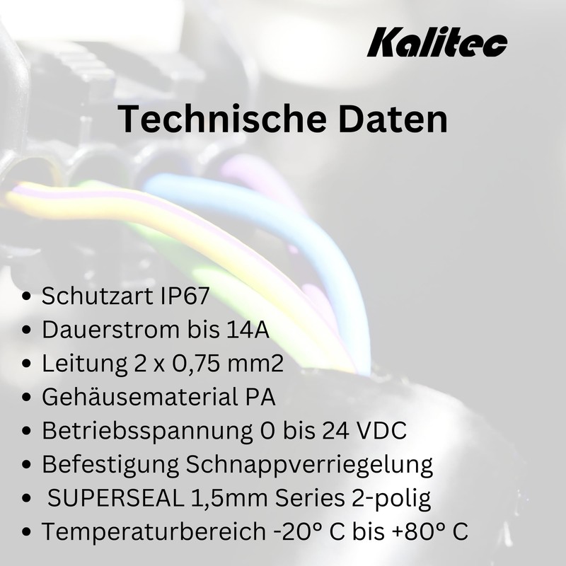 Kalitec SuperSeal 2-Pin with Moulded 2 Metre PUR Cable 2 x 0.75 mm² Black I Assembled Cable with Socket I Socket Housing Waterproof IP67 I Pre-Assembled Ready-to-Connect Cable