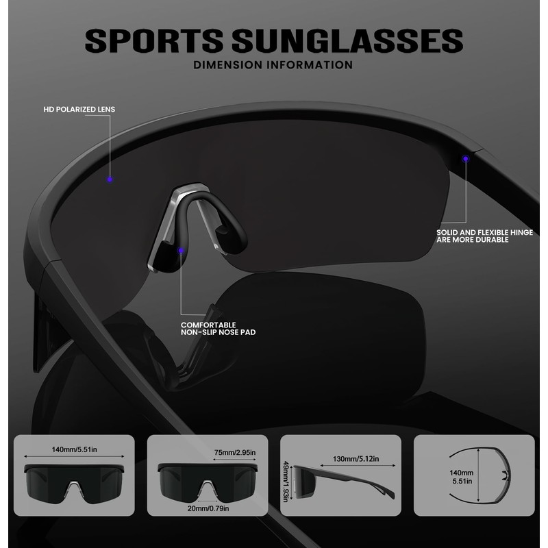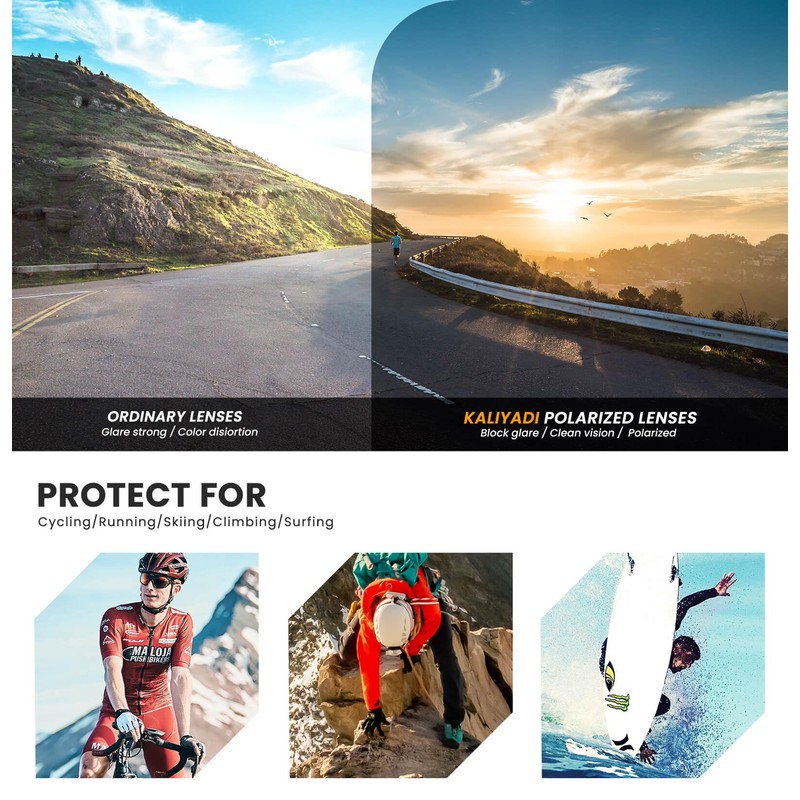 - Polarization Scratch Resistance: KALIYADI sports sunglasses for men are equipped with high-definition polarizing lenses, which can effectively filter out reflected light and glare, thus alleviating eye fatigue. At the same time, the sunglasses for men polarized can block UVA and UVB rays and protect your eyes from harmful ultraviolet rays. Its lens surface has been specially treated and has excellent scratch resistance, which ensures that the lens is not damaged in outdoor sports environment.