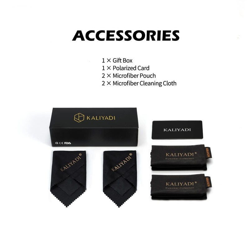 • ★ Gift Idea Package and Brand Customer Service ▶ Classic sunglasses*2, microfiber pouch*2, microfiber glasses cleaning cloth*2, gift box*1. Our sunglasses for men women are also gift packed, which will be great gifts for your family and friends! All KALIYADI customers enjoy brand customer service for our polarized sunglasses. The integrity of every box and the quality of the lenses are double checked by third-party companies. And that goes with a lifetime support!
