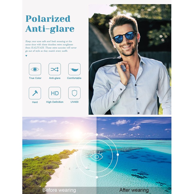 - ◆ Perfect All Round - KALIYADI womens sunglasses trendy has a retro round design, which is suitable for all kinds of faces and look. You can take these trendy sunglasses for women to party, travel, shopping, driving and so on. KALIYADI sunglasses womens polarized are always perfect companion for your stylish travels.