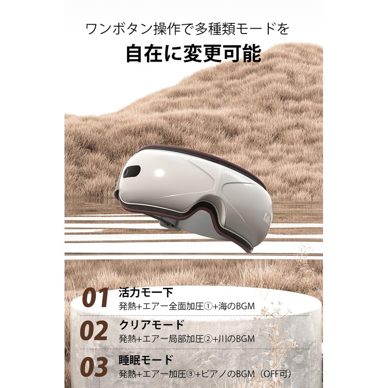 - (One button operation allows you to freely change different modes) Our eye warmer is equipped with Japanese voice guidance so it can be easily operated by beginners and elderly. One button can be adjusted to 3 different modes (01 energy motion, 02 clear mode, 03 sleep mode). This hot eye mask is made of graphene material with excellent heat conductivity for quick heating It warms up to about 104°F (44°C), and heals your eyes