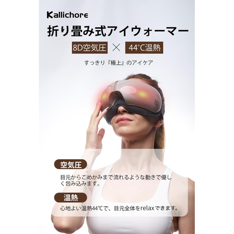 Kallichore Eye Warmer, 8D Airbag, One Button & Constant Temperature, Hot Eye Mask, Graphene Heating to 44°C, Foldable, Eye Care, Bluetooth Music, Eye Salter, Type-C Rechargeable, Irresistible for