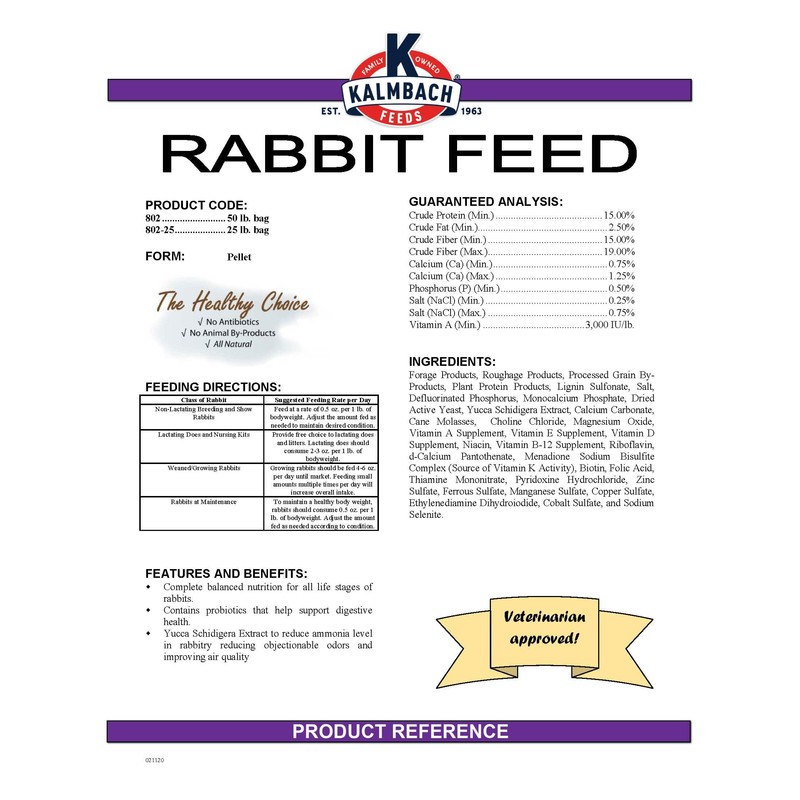 Complete balanced nutrition in a pellet form designed for all classes of rabbits.