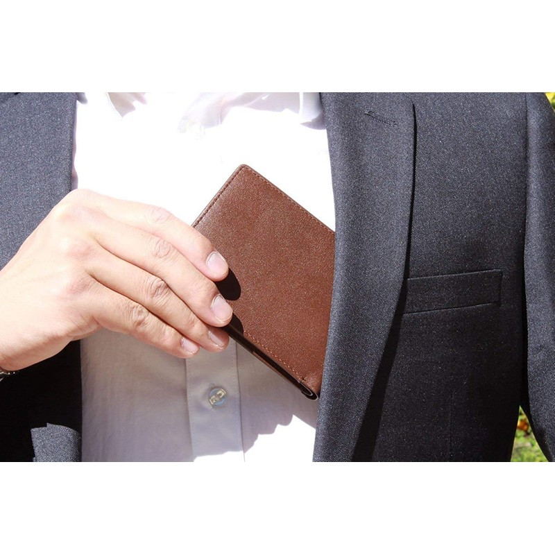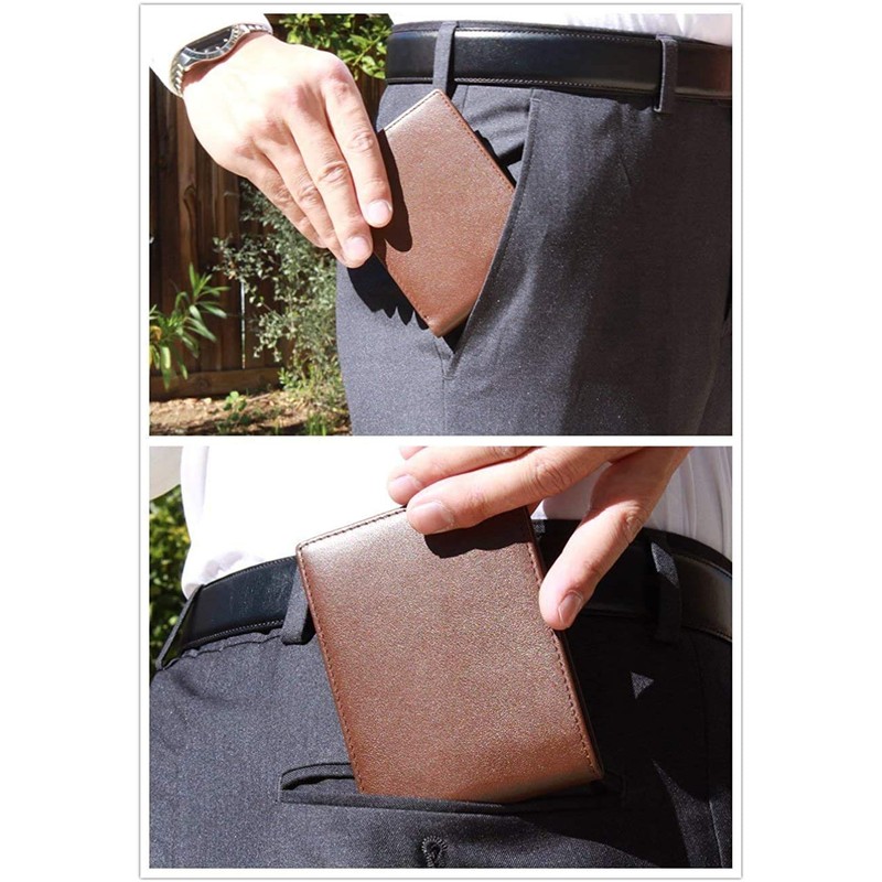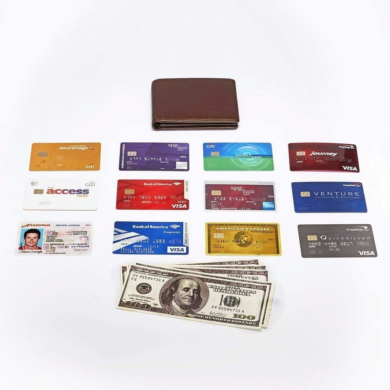 KALMORE Men's RFID Blocking Extra Slim Multi-Card Wallet, Full-Grain Leather Brown, One Size