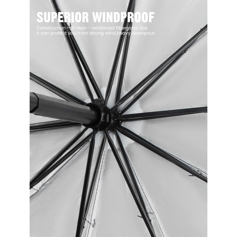 - 【Superior Windproof】The wind resistant umbrella is designed in a double-canopy venting, which allow the wind can pass through to prevent it from inverting by the strong wind. Reinforced durable stainless steel frame system with 10 ribs construction also enhance its stability and effect of windproof. The ergonomic handle also makes it comfortable to hold and easy to grip.