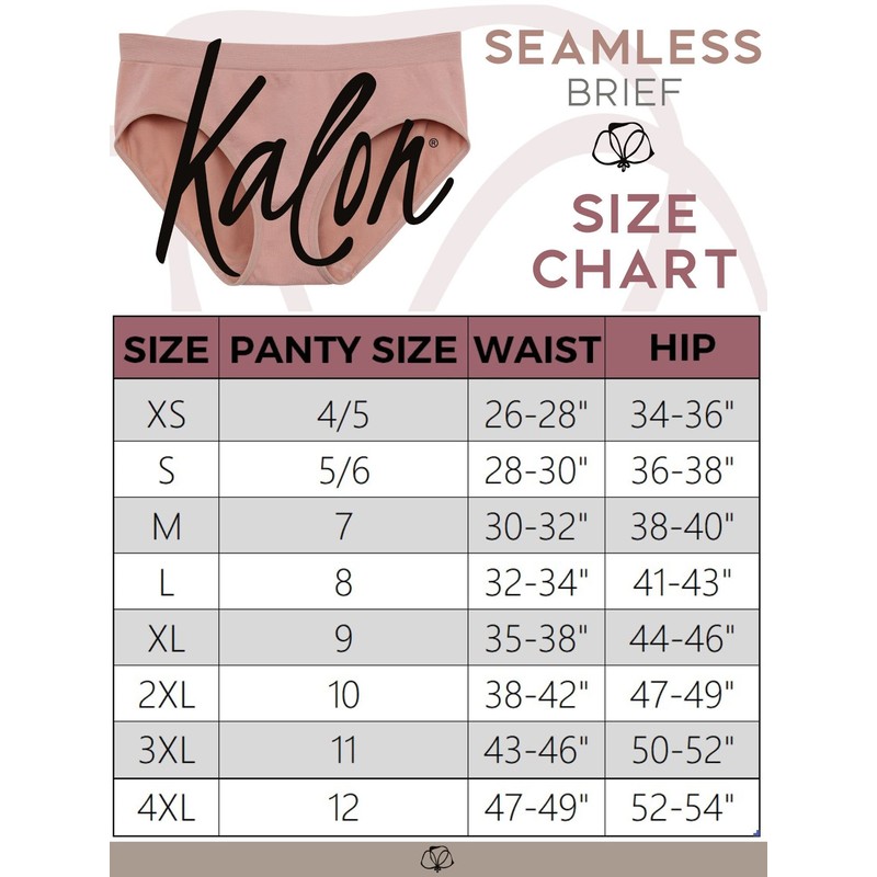Looking for your new favorite pair of brief - bikini panties? Then check out these from Kalon. Perfect for working out or every day panties. Women's Cut. Hip Measurements: Small: 36-38" ; Medium = 38-40"; Large = 40-42.5" ; X-Large = 43-45" ; XX-Large = 46-49". Super soft and stretchy fabric.