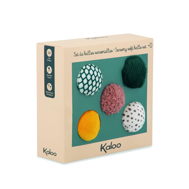 Kaloo - Stimuli - Set mit 5 Sensorikbällen 5 cm - Weich und Leicht, Verschiedene Strukturen - Steckfunktion - Entwicklungsspielzeug Motorik und Handhabung - ab Geburt, K971605