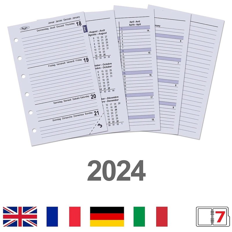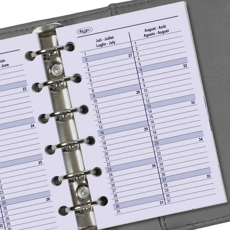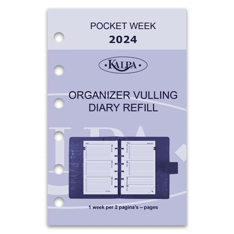 Kalpa 6 Ring Binder Agenda Refill Personal Organiser Diary Insert Calendar Insert, 2024, B7 Pockets, 1 Week on 2 Pages