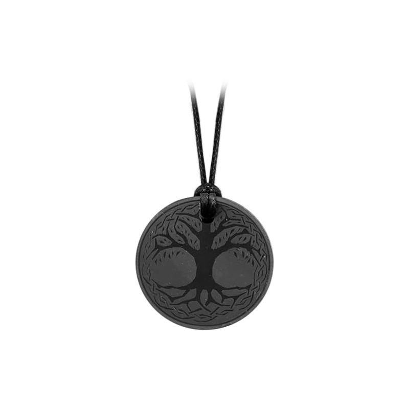 - Unique: The pendant is a real natural stone and therefore unique. Each stone may vary slightly in colour and shape from the picture. The shungite is a black stone. The laser is also black. Depending on the incidence of light, the tree of life shines almost silver.