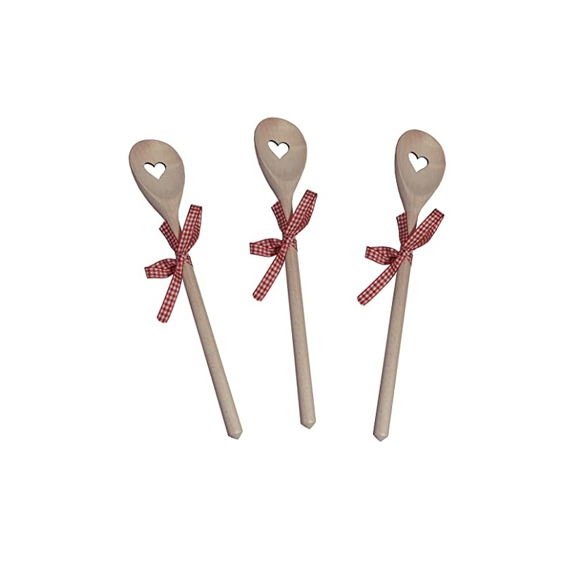 Kaltner Präsente Gift Idea – Wooden Spoon Wooden Spoon Beech with Heart and Bow Motif (Set of 3)