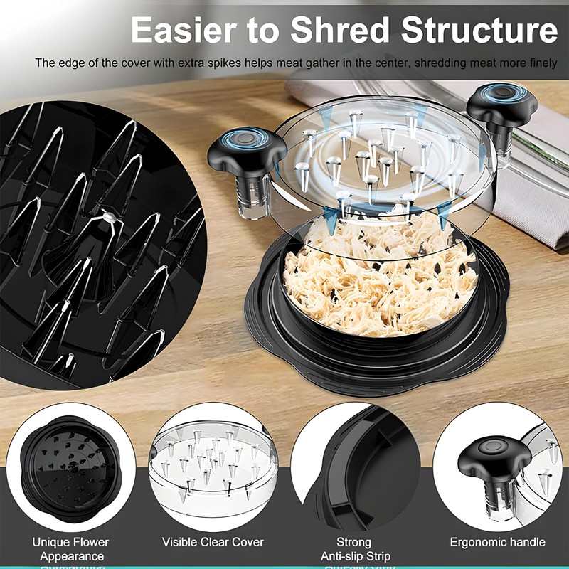 - UPGRADED CHICKEN SHREDDER: This efficient chicken shredder easily shreds cooked chicken, meat, and vegetables in seconds, dramatically reducing prep time and making it simple to create delicious dishes like salads, tacos, and sandwiches.