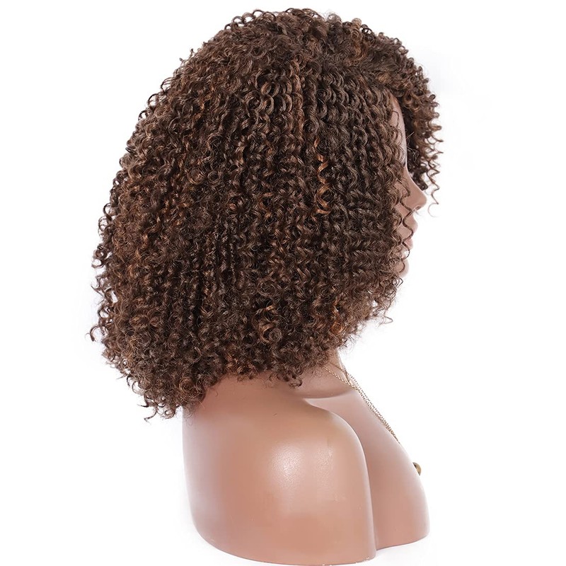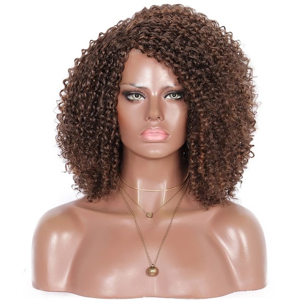 Kalyss Short Afro Kinky Curly Wigs for Women Side Curved Part Natural Looking Big ,Bouncy and Super Soft Premium Synthetic Afro Curls Wigs for Women (Mix Brown Highlights)