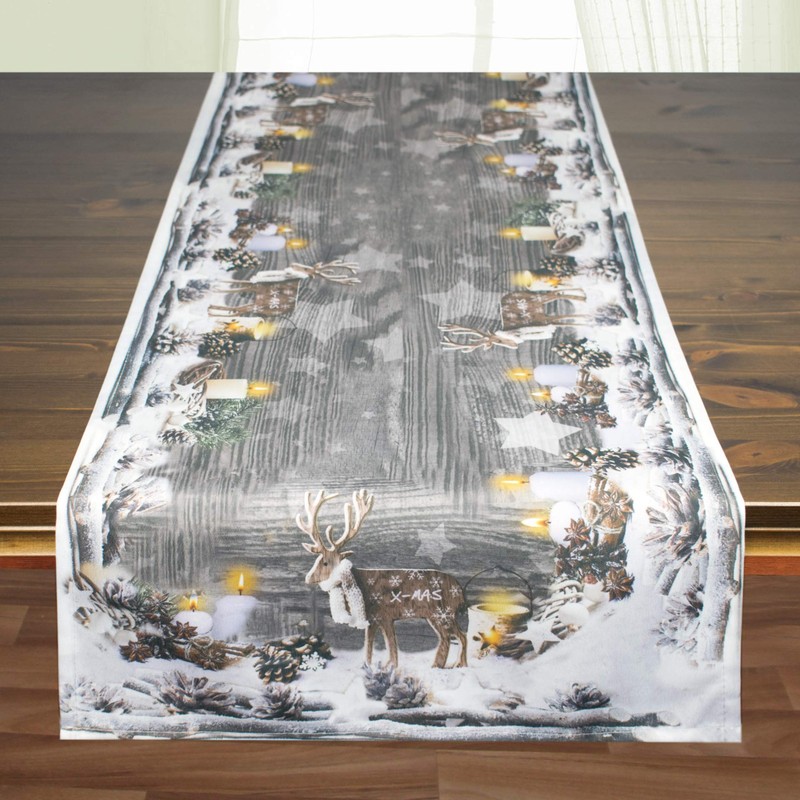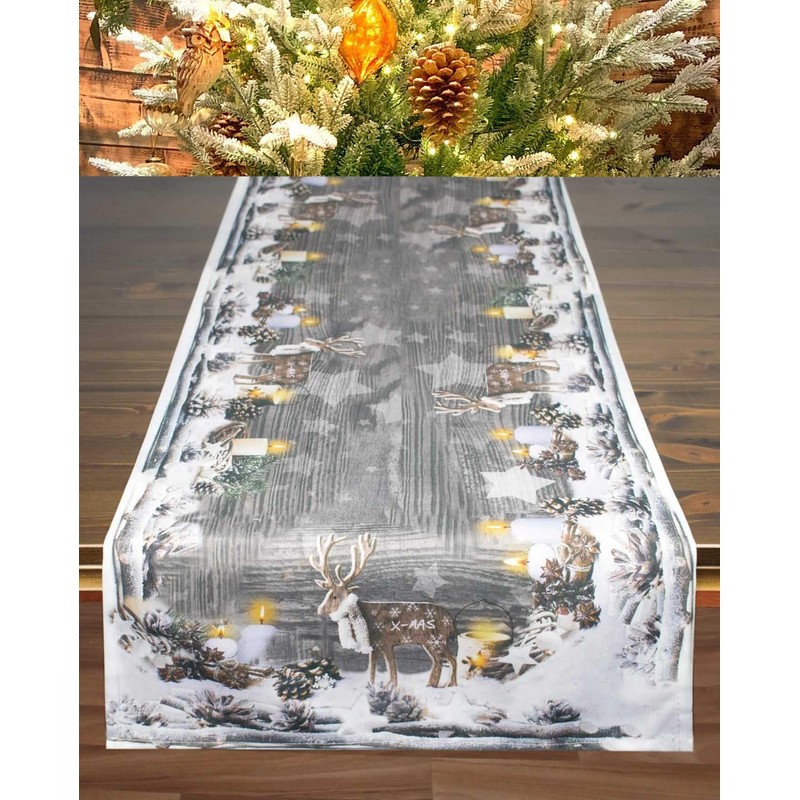 Kamaca Table Runner 40 x 140 cm with High-Quality Print Motif, Kitchen Dining Table Eyecatcher, Autumn, Winter, Christmas (Reindeer)