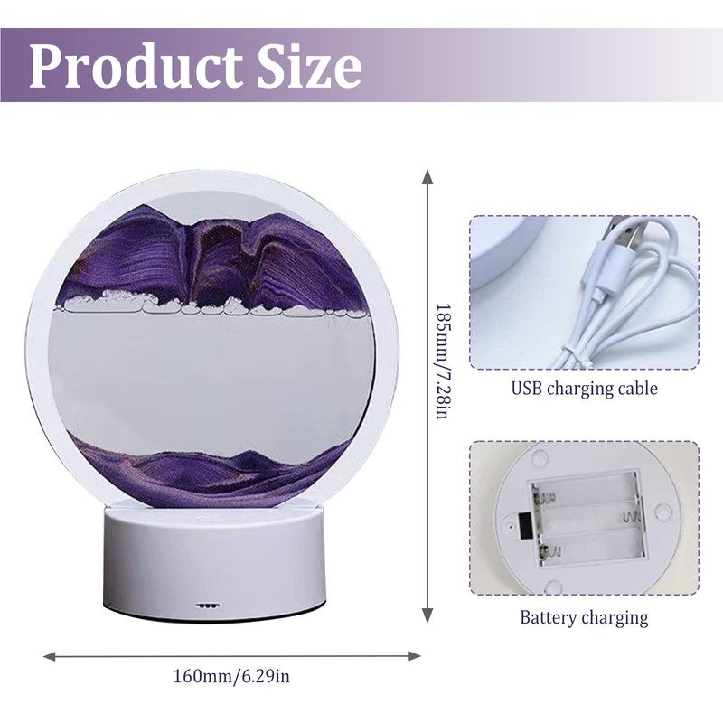 - [Unique Sand Picture]: The unique bedside lamp is a combination of flowing sand picture and table lamps. It is used as a table lamp for night lighting and can be placed indoors during the day as a good decoration. Our night lamp uses USB power or battery power (the product does not contain 3AA).
