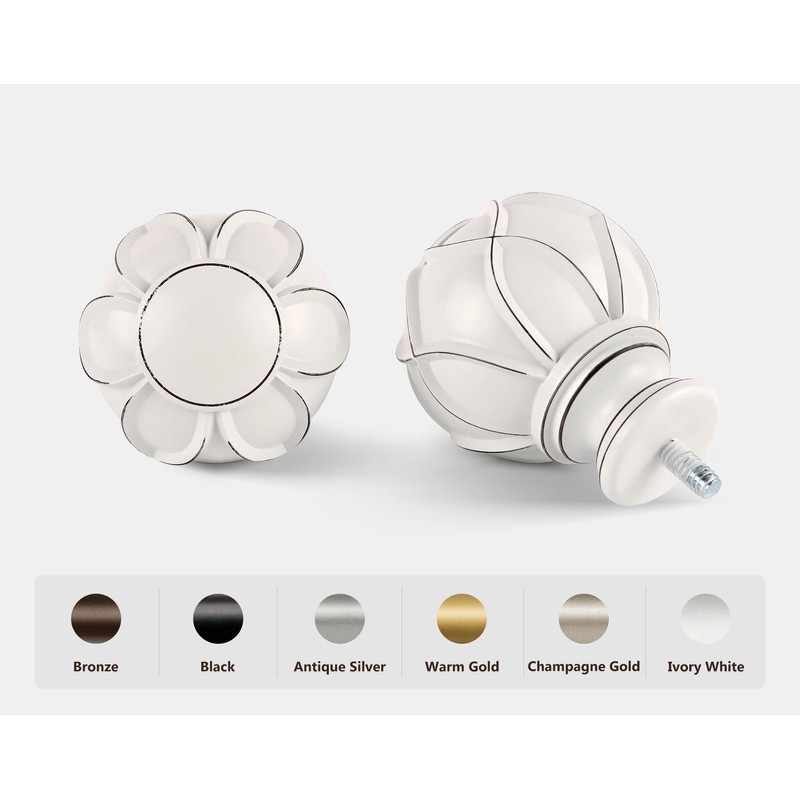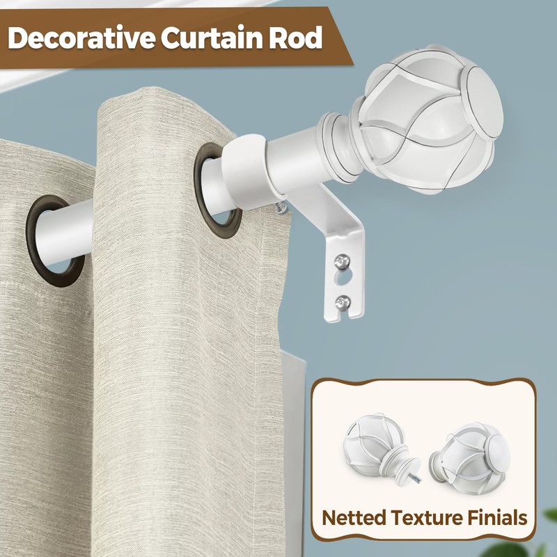 - DECORATIVE CURTAIN ROD: Unqiue and stylish netted texture finials on either end of the white single window rod. Provide you with perfect visual enjoyment and special appearance. More color available in black, antique bronze, silver, warm gold, white, champagne gold, matching multiple interior house style