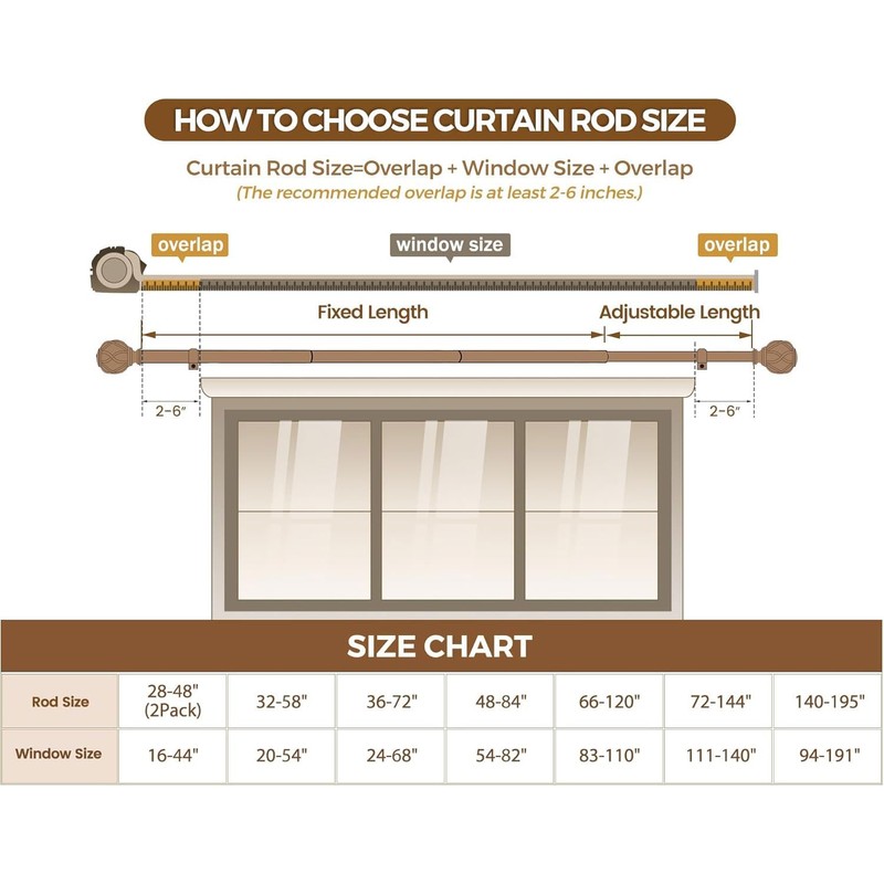 This decorative curtain rod is versatile, match with a variety of curtain types, such as ring curtains, pinch pleat curtains, and draperies. Fit your various window & curtain decor needs.