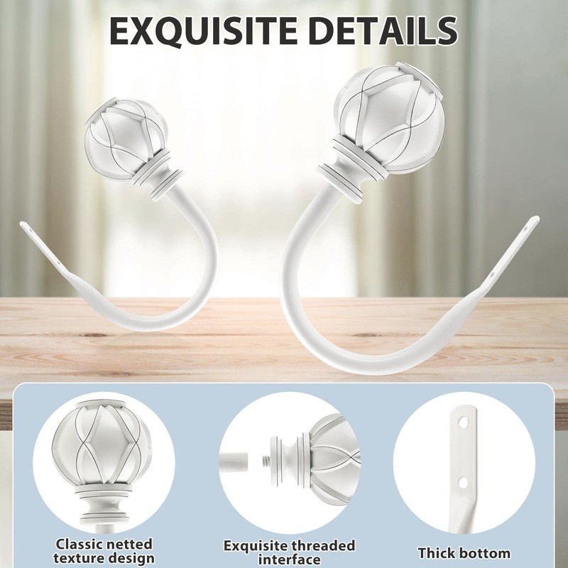 Estos soportes decorativos para cortinas están hechos de resina de alta calidad que son duraderas, fuertes y resistentes al desgaste y fáciles de sostener la cortina o cortina fácilmente.
