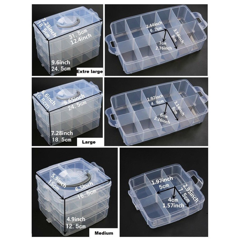 Kamay's Extra Large 3 Tier Stackable Adjustable Compartment Slot Bead Craft J...
