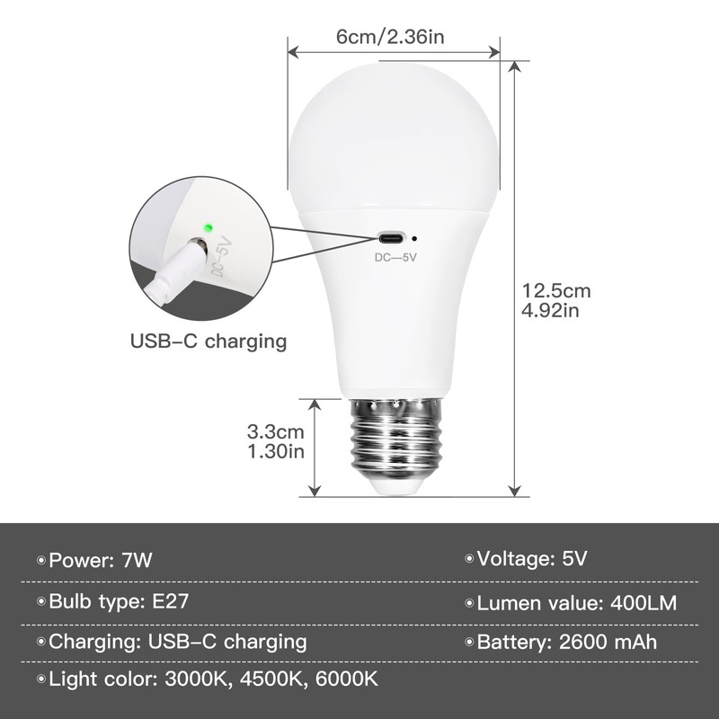 - SCHNELLES LADEN – diese Kambo E27 Akku glühbirne unterstützt das Laden über USB-C. Der eingebaute Hochleistungsakku mit bis zu 2600 mAh ist in nur 2–3 Stunden vollständig aufgeladen. Je nach Helligkeit kann sie 6–20 Stunden im Dauerbetrieb verwendet werden und eignet sich auch als Notbeleuchtung für eine stabile Beleuchtung