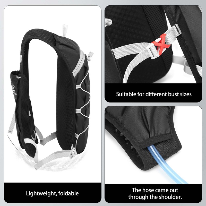 - Lightweight: running and cycling vest, backpack, size 23 cm x 38 cm, only 250 g, foldable.