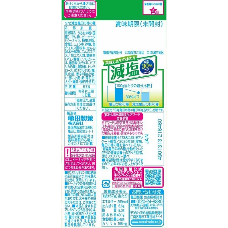 Kameda Seika Reduced Salt Kameda Persimmon Seeds, 2.0 oz (57 g) x 12 Bags