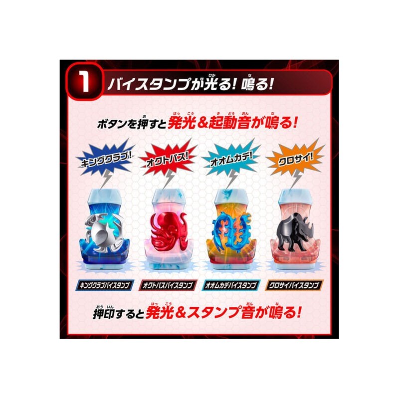 From Kamen Rider Revice, the "Bi Stamp Selection 04" is a set of 4 bi-stamps designed for 4 Heisei Kamen Rider Designs.