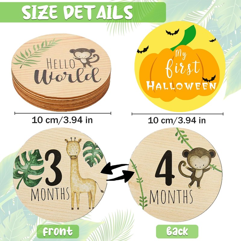 - DOPPELSEITIGES DESIGN: Die Holzmeilensteinkarten sind doppelseitig bedruckt, mit hochauflösendem Digitaldruck, jede Seite hat ein anderes Design, um die Ankunft des Kindes in Sammelalben oder in sozialen Medien zu teilen. Enthält die Monate 1 bis 12 und 8 Festivals, um einzigartige Erinnerungen festzuhalten