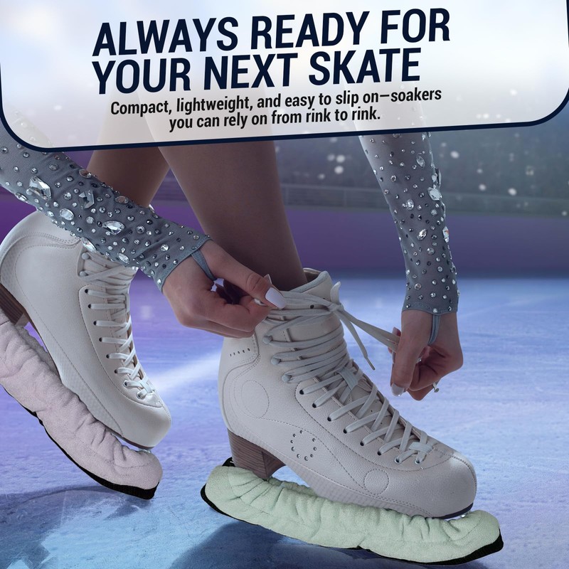 • SLIP ON, STRIDE OFF—NO TOOLS NEEDED: Simply slide these ice skating soakers over your blades after every session—no hardware or adjustments required. Though not intended for walking, these soft guards are perfect for locker room storage, transport, and drying skate between use. Lightweight and easy to fit, they provide hassle-free blade protection that fits neatly in any gear bag or locker, keeping your blades safe and dry wherever you go, from practice days to competition weekends effortlessly.
