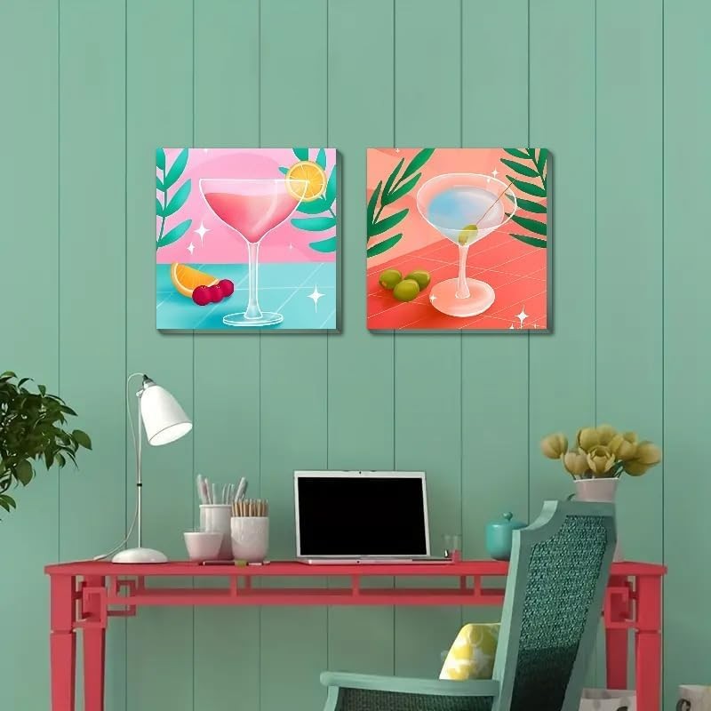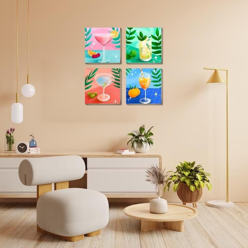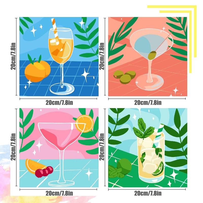 KAMIERFA 4-Piece Set Paint by Numbers for Adults, DIY Hand-Painted Oil Painting Set, Mini Paint by Numbers, Without Frame, Single Cocktail Cup, 20 x 20 cm