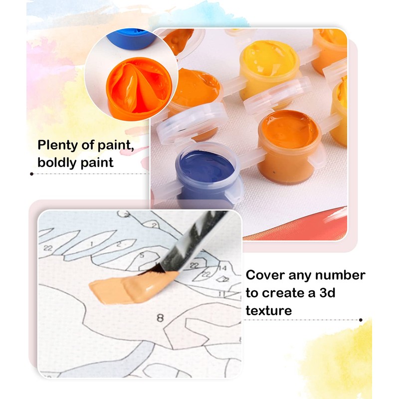 - Enjoy DIY fun: DIY paint by numbers set are very suitable for relaxing and entertaining yourself in your spare time, and can be a good bonding experience for families. When you finish painting by numbers, you can increase your sense of achievement, relieve stress, balance emotions and add more fun to your life