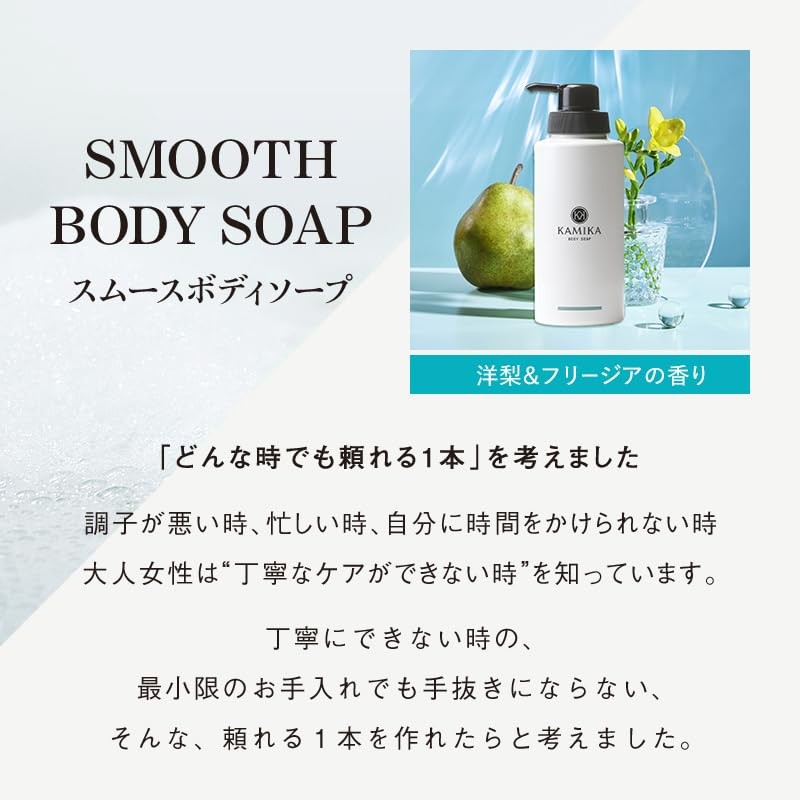 KAMIKA(カミカ)スムース ボディソープ [リキッドソープ メレンゲ泡 天然由来の洗浄成分 保湿 ] 洋梨&フリージアの香り480ml/1本