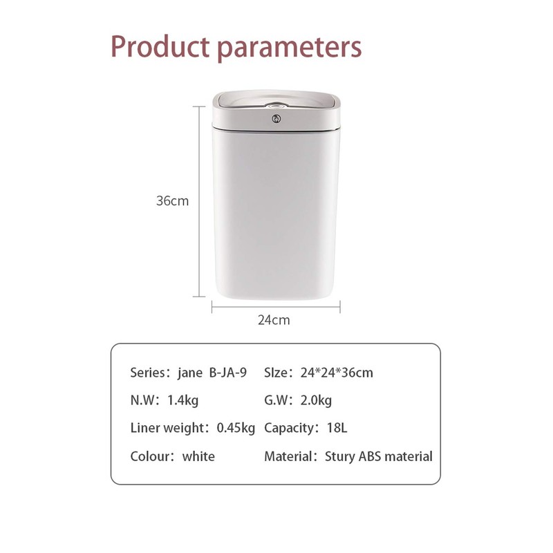 - ❖9 Major Upgrades Leading A New Era Interlligence Trash Can-Not only will it only automatically open and close. Automatic induction ,Touch sensing ,Sealing odor ,Long open function,Two ways of using ,Bass slow down,Sturdy ABS material ,Bag is not exposed ,18L large capacity .