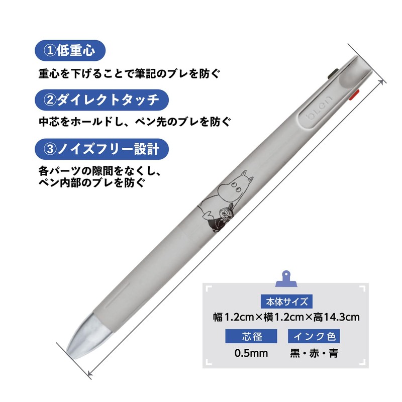 - Features: This is a blent with Moomin and Little My design. This is a ballpoint pen that reduces writing vibration. This is a ballpoint pen that has been able to solve any potential complaints that users are unaware of their new writing ability