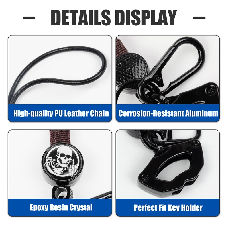 - ๐๐ญ๐ฎ๐ซ๐๐ฒ & ๐๐ข๐ ๐ก ๐๐ฎ๐๐ฅ๐ข๐ญ๐ฒ : Provides secure storage for your keys, keeping them organized and preventing scratches on your motorcycleโs bodywork. The leather strap allows convenient attachment to your bike or easy carry.
