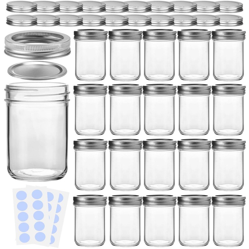 - 👉Premium Strong High Quality Glass Jars with Silver Lids -- 20 pieces 8 OZ mason glass jar set with 20 silver screw lids, extra 20 Silver Lids and 30 whiteboard labels, which is made of the highest quality materials for maximum durability and convenience.