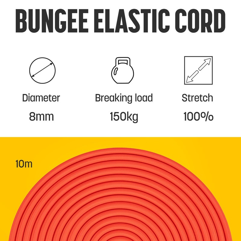 - 🧵Multi-Purpose - Bungee cord works incredibly versatile, as the elasticity helps absorb shock which assists in transporting items, holding items together, storing items, securing items. For instance, it can be used to secure items to your vehicle, caravan, roof rack, trailer, or tarpaulin. It is perfect for camping, kayaking, boating, tent poles, or trampolines.