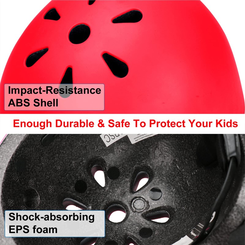 • PREMIUM PROTECTION FOR YOUR KIDS- Meet Safety Requirements. Made of impact-resistant ABS shell and high density EPS foam, equipe with protective gear set. Effectively protect your kids from any injuries during multi-sports, Comes in beautiful package, your child will enjoy the present and feel safe during sports