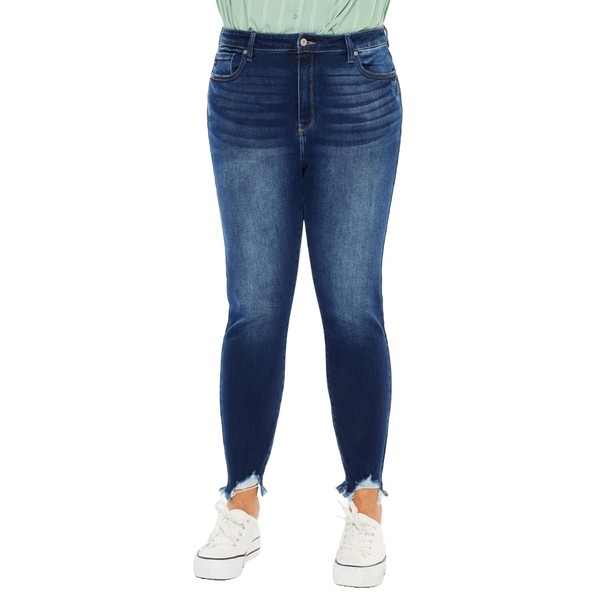 Kan Can Women's High Rise Frayed Ankle Skinny Jeans (US, Numeric, 7, Regular, Regular, Dark Blue)