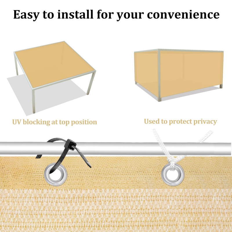 - 🛠️ Durable & Effortless Installation: Engineered for durability and ease of use, our shade cloth boasts reinforced edges and aluminum grommets every 2 feet (61cm) for enhanced strength. With included zip ties and ropes, installation is a breeze, offering flexible options to suit your outdoor space perfectly.