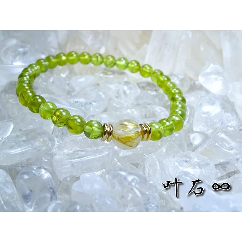 - Gold Rutilated Quartz, 8mm Peridot, 5mm - 6mm Gold, Rondell