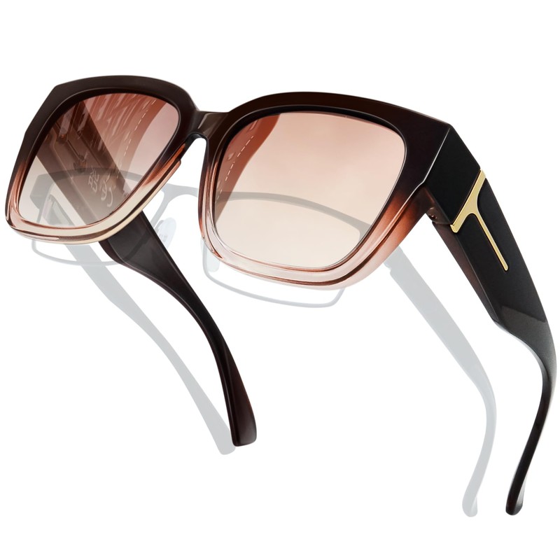 • UV400 Polarized Lenses: The polarized sunglasses for women can block of UVA, UVB, UVC to protect your eyes from harm. With this brown sunglasses over glasses for women or men that give a stylish aura. You can easily match it with any clothes