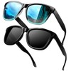 KANASTAL Sunglasses for Women Men Polarized Sunglasses Classic Color Sun Glasses Square Shades UV400 Protection Blue and Black Lens 2 packs