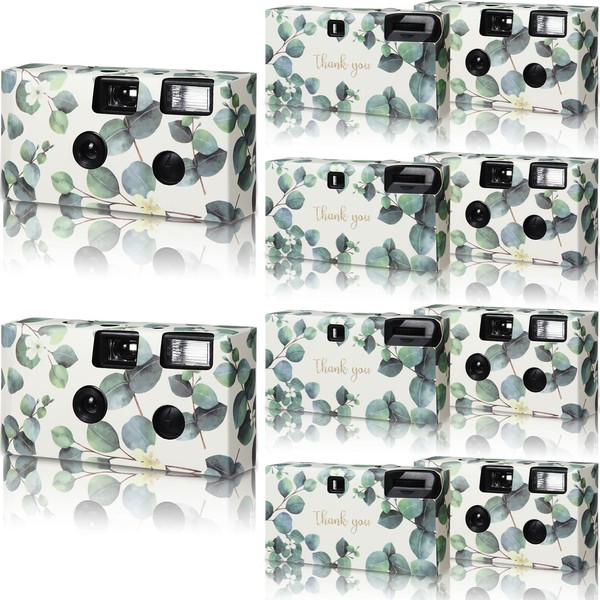Kanayu 8 Pack Bulk Disposable Camera for Wedding, 35mm Single Use Camera with Flash Disposable Cameras One Time Camera for Wedding Anniversary Party Supplies (Retro Color Film, Eucalyptus Leaves)